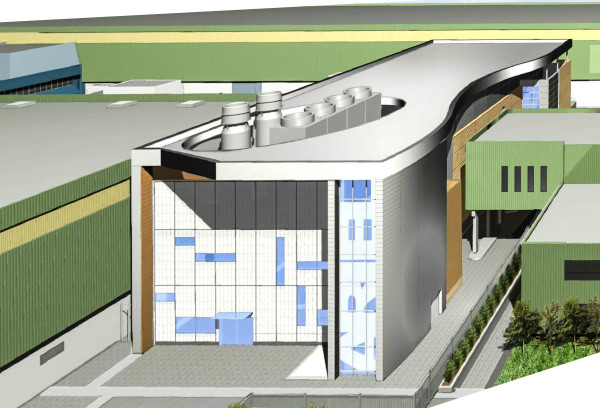 Architectural features consist of curtain wall façade that allow the building to blend in with the existing surroundings, while the graphic glass highlights its unique usage.